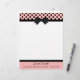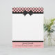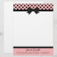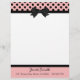 Pretty letterhead stationery, with graphics of a pink, with black polka dot header, with a black border and black bow, in the middle. A black band, at the bottom, acts as a border for the pink footer part of the page, with custom black text ready to personalize. Pretty retro yet stylish look.