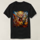 The T-shirt you describe is a unique and striking piece, perfect for those looking for a bold and symbolic style. In the center stands an impressive illustration of a rural battle between angels and demons, with San Miguel Archangel as the central figure. San Miguel, represented with his bright armor and sword high, radiates power and determination, leading the angels in the fight against the dark forces. The scene is full of dynamism, with angels winged in various combat positions, while demons, with their sinister characteristics, add a dramatic contrast.