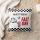 Fast One 1st birthday Boy Racing Car Throw Pillow