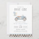 Fast One Blue Race Car & Balloons Boy 1st Birthday Racing Invitation