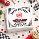 Start your little speedster’s first birthday in style with this Fast One race car banner! Featuring a cool red race car, bold chequered flags, and a fun sporty design, this banner is perfect for your racing-themed celebration. Personalize it with your child’s name for a special touch. Hang it as a party backdrop or display it at the entrance to set the scene for a high-speed birthday bash!