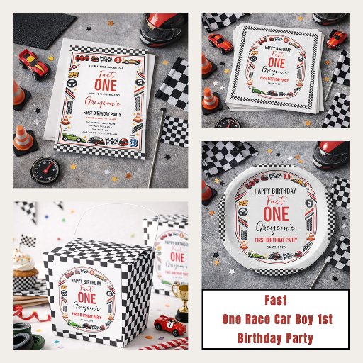 Celebrate your little speedster with a Fast One Race Car Boy 1st Birthday Party invitation! Customizable, fun, and perfect for a car-themed birthday party.