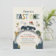 Your one year old is a fast one! Invite friends and family to a fun 1st birthday party with this fun vintage cars and animals illustration themed invitation.