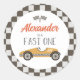 Fast One yellow Race Car Birthday Classic Round Sticker