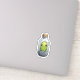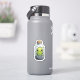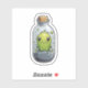 This sticker features a cute cartoon monster in a glass jar filled with a blue liquid and bubbles. The monster has two small horns, big round eyes and a wide smile. The jar has a white label with a black border that you can customize with your own text. This sticker is perfect for anyone who loves monsters, fantasy, or fun designs.