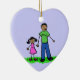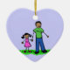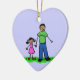 Father and daughter hold hands. The dad's shirt read "daddy" and the little girl's dress reads "me". The family has black hair and tan skin. The image comes in multiple colour versions. There is also a no colour drawing version too. Personalize the daddy and daughter ornament with family names or a personal message for a special father or daddy button pendant gift! You can make custom family ornaments for a special Father's Day gift, new Daddy, Family Reunion or other customized family art gifts!