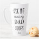 Father Latte Coffee Mug in Black White with Funny Ask me about my dad jokes funny quote mug | Funny Dad Father Quotes Latte Coffee Mug |