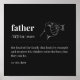 This poster features a definition of the word "father." Pictured above the definition, is a father and son's first fist bump. A perfect gift for a father's first Father's Day. Also available in black on white.