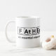 Product is well made, with good glazing, no cracks and good proportions for those of us who love large quantities of caffeine. Nerdy dads like the F At H Er an essential element logo. The logo and writing were clean (no splotches or lines not related to the design), with good contrast, and well centered horizontally and vertically.