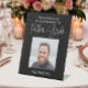 Cet élégant panneau blanc sur la photo mariage de mémorial noir est une belle façon de se souvenir et de rendre hommage au père de la mariée le jour du mariage. Placez ceci sur la chaise où il aurait été assis au mariage.