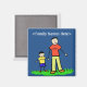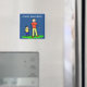 Father and son hold hands. The dad's shirt reads "daddy" and the little boy's reads "me". The family has black hair and light skin. The image comes in multiple ethnic versions. There is also a no colour drawing version too. Add your customized family name to personalize the magnet. Add a custom message for a special father or daddy magnet! You can make a personalized fridge art magnets for a special Father's Day gift, new Daddy, Family Reunion or other customized family art gifts!