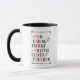 Father's Day mug for dad with descriptive words, including fun, caring, patient, helpful, clever, provider, with certain letters which spell out "FATHER" with rabbit, heart, arrow and light bulb doodles. Change "Happy Father's Day" to another occasion and add current year.