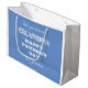 Father's Day Custom Modern Cute Grandpa Gift Bag. Beautiful blue background with decorative fancy white script lettering. Click personalize this template to customize it quickly and easily. Matching gift bag, fleece blanket, paper plate, paper napkins, wine label, beer label, stickers and key ring in my store under Grandfather or in Grandfather Collection. 30 Day Money Back Guarantee. Ships Worldwide fast.