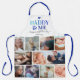 Make your own father's day apron featuring a family photo collage template, the title "DADDY & ME", a personal message, a blue heart, and the childs name.