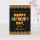 A stylish Father's Day greeting card from a group of people of family, in an Art Deco style. The front cover greeting is, 'Wishing you a very HAPPY FATHER'S DAY, from All of Us!' in bright red, blue and golden yellow on a black background. There are curved Art Deco patterns at the top and bottom and the inside message is just a suggestion which you can easily change or delete altogether if you wish.