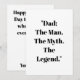 “Dad: The Man. The Myth. The Legend.” is the perfect gift for Father’s Day, birthdays, or any day you want to honor an amazing dad. Ideal for t-shirts, mugs, and greeting cards