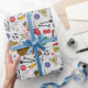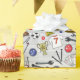 The perfect gift wrap for men who love to hideout in their man cave, printed with a pattern of DIY tools, junk food and sports equipment