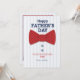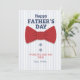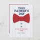 A handsome invitation for dad. Just include your favourite photo to make it yours! The card features a striped shirt with a chequered-red bow tie and two buttons. The back holds a full photo.