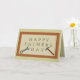 This awesome Father's Day card features a digital art image of a wooden desk with a group of wooden letters on it that spell out the words Happy Fathers Day. Each of the letters has a series of nails hammered into it. There is also a spanner on one side of the sign and a hammer on the other side. A great design for any handyman Dad who loves to make things.
