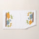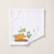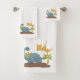 Serviette au design mignon avec 4 dinosaures. 2 volent et 2 sont au sol. Créé avec des aquarelles.