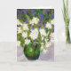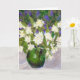Une carte d'anniversaire avec une peinture originale pastel à l'huile d'une cruche verte remplie de Faux orange parfumé et de Ceanothus bleu.