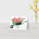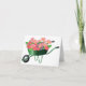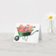 Un joli étalage de fleurs dans une brouette. C'est une pièce merveilleuse qui est si colorée et lumineuse. Les fleurs sont dans une brouette verte. Cette brouette pleine de fleurs design est magnifique sur ces cartes de notes