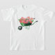 Un joli étalage de fleurs dans une brouette. C'est une pièce merveilleuse qui est si colorée et lumineuse. Les fleurs sont dans une brouette verte. Cette brouette pleine de fleurs design a l'air super sur ce t-shirt de filles. Parfait pour vous-même ou comme cadeau
