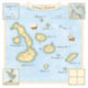 This faux-antique map of the Galapagos Islands is decorated with tiny sailing ships in the style of the British Navy during the Napoleonic Wars or Victorian Era and a border containing drawings of native wildlife. This design is perfect for fans of Charles Darwin or the Galapagos Islands, travel, and exotic places.