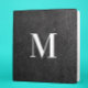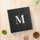 A faux leather look with a modern bold monogram. Faux black leather for him. This photo prints flat with no actual leathery texture.