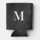 Faux Black Leather Modern Monogram Can Cooler