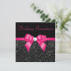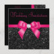 Faux Black Sequins and Hot Pink Bow Wedding Invitation