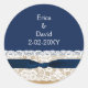 burlap lace, navy blue ribbon knot rustic wedding favour stickers and envelope seals. Matching products also available.