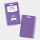 Joli badge de passe de bibliothèque violet avec un faux carnet, une petite pile de livres et une théière. Personnalisez-le avec le nom de l'enseignant. Choisissez le type de pièce jointe que vous voulez (aucune, clip métallique, lanière ou rétractable). Des modèles similaires sont également disponibles en vert, rouge et bleu . © ArianeC Illustrations-Tous droits réservés