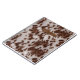 Brown and white faux cowhide spotted pattern with your name on faux leather printed rectangle design at top of front.