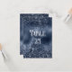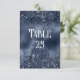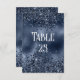 A wedding table number card featuring an elegant faux dark blue glitter and foil background.
