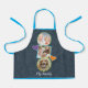 This girl's apron design features a simulated faux denim blue background. This means the denim is a printed on graphic rather than actual "real" denim fabric, but it still looks fabulous!
