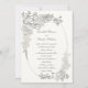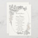 A stunning floral frame with peonies as the centre pieces, with filler wedding flowers and foliage such as eucalyptus, stock flowers, ferns, veronica flowers and more, hand-drawn in ink and layered with a faux-embossed effect, decorates this elegant and sophisticated formal wedding invitation template that features elegant calligraphy and an oval frame with the same faux-embossed effect over a pearl white background. This art wedding invitation is a lovely choice for couples who love fine art, art designs, unique and original art and formal, traditional wedding designs. Customize each line of text. Matching items available.