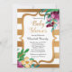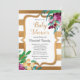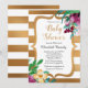 Beautiful watercolor flowers, and faux gold foil stripes baby shower invitation for a mother-to-be.