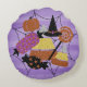Pretty and Colourful Round Throw Pillow Featuring Faux Glitter Halloween Candy Spider Web Collage Design - Great Halloween Decor!