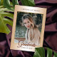 Unique and trendy congratulations graduate announcement card with a classic faux shiny gold and white coloured ombre gradient pattern background. With room to customize or personalize with a photo, the name of the graduate, class graduation year, high school and future college or university name. Let the family, friends and neighbours know there is a happy graduate ready to conquer the world, and invite everybody to come celebrate the happy event with you!