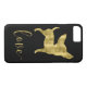 Iphone 8 case with faux gold foil chihuahua silhouette and Love text, printed on black background