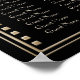Une toute nouvelle variation sur l'un de nos modèles de Mariage les plus populaires, ce modèle de tableau de bord de réception de mariage dispose d'un arrière - plan noir avec des graphismes à l'ombre d'or blanc imitation. Un cadre rectangulaire englobe le mouvement géométrique Art Déco des années 1920 Great Gatsby style motif. Veuillez noter que cette affiche est entièrement imprimée, qu'il n'y a ni revêtement ni encre métallique.