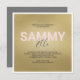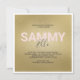 This square bat mitzvah party invitation features your name set in a bold modern font with with your middle name in trendy handwritten script typography over a faux gold background. The invite card reverses to a complimentary solid charcoal grey. A cute yet simple choice for your girl's stylish party. To see more of contemporary invitation suite visit DoTellABelle on Zazzle.