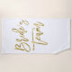 Beach towel with faux gold Bride's Team text printed on white background