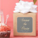 Grey background with faux gold calligraphy custom script "save the date" and your own monograms in elegant font. This sticker pairs beautifully with our cards and envelopes.