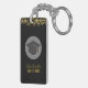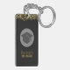 Un porte - clé qui dit : Classe de 20xx. Le dos peut être personnalisé avec votre nom et numéro de téléphone ou autre texte. Conçu avec une fausse parties scintillant de confetti en or. Placez-vous sur un arrière - plan noir. Illustré avec un capuchon de graduation noir avec un cercle semi-transparent derrière. Élégant et chic.