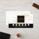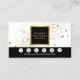 Une amusante bande de points de confettis en or faux métallique orne ce design moderne et élégant de carte de fidélité blanche. Votre nom ou nom d'entreprise est minimalement stylisé dans une boîte noire encadrée d'or au centre. Mettez à jour la remise pour votre propre offre unique. Design © 1201AM Design Studio