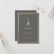 This classy, elegant wedding reception enclosure card has a dark grey background, and a gold frame border and image of the Eiffel Tower. Your text is also in a gold colour. Perfect for any Paris theme or French wedding.
