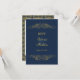 Faux Gold Flourish Damask Navy Blue RSVP Invitation