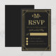 Chic faux gold foil art deco wedding RSVP cards. The elegant wedding RSVP cards feature a faux gold art deco border, dark grey background, and wedding monogram. Change the font style by clicking the "Customize It" button.